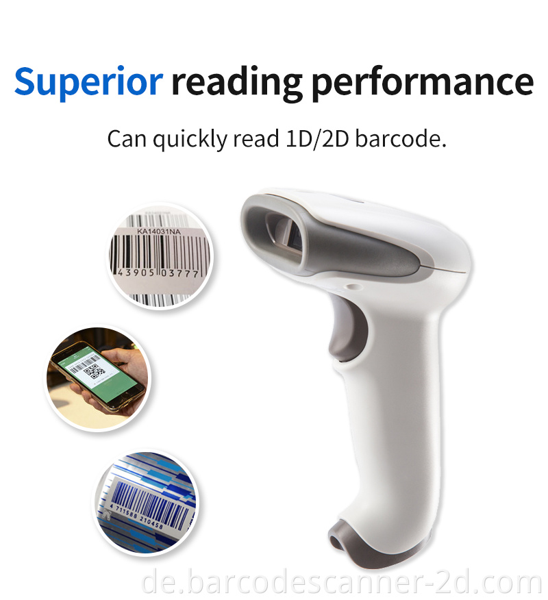 Der Scanner liest 2D- und 1D -Barcodes, die auf Etiketten gedruckt oder auf den Gerätebildschirmen 1D -Barcode -Scannermodul angezeigt werden.